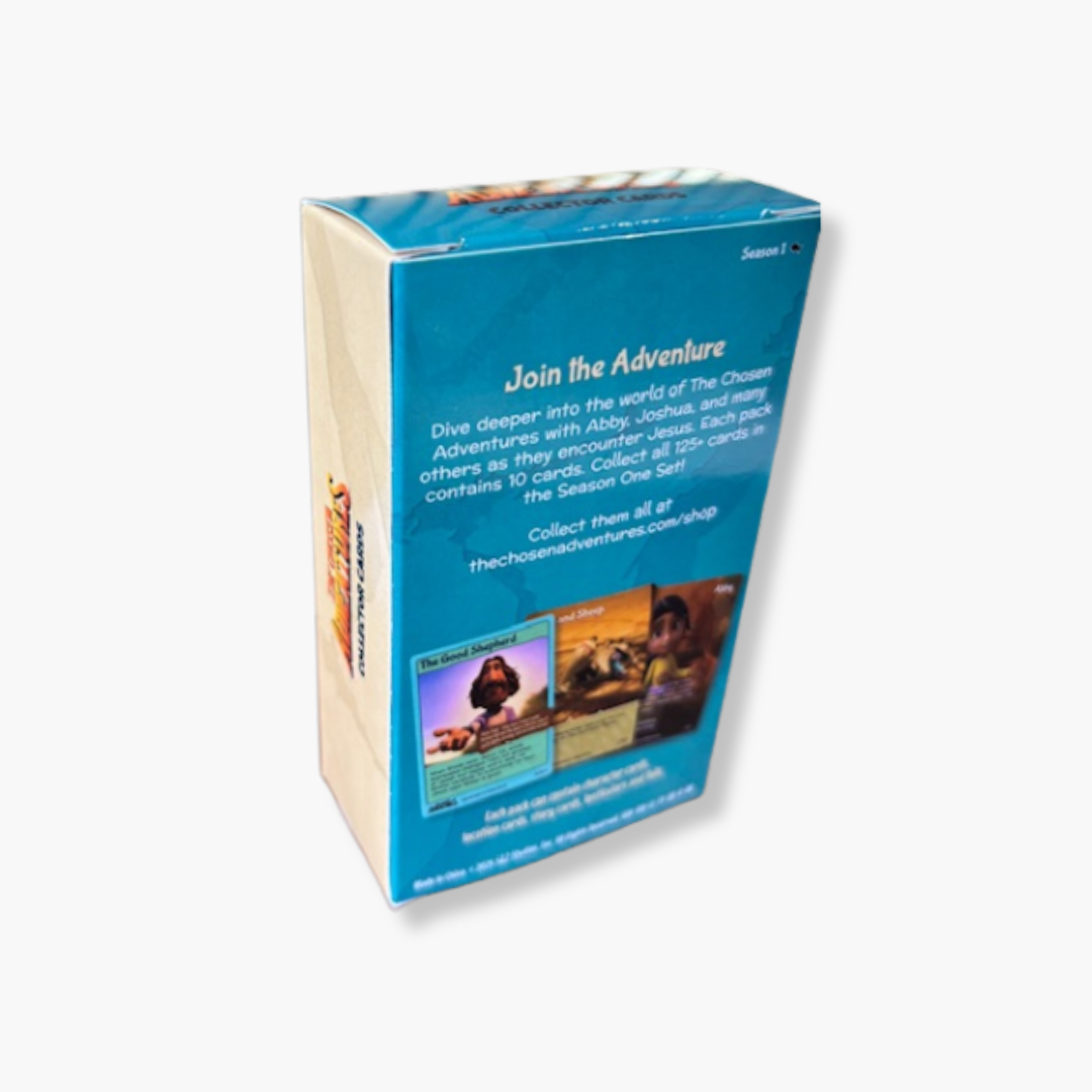 Dive deeper into the world of The Chosen Adventures with Abby, Joshua, and many others as they encounter Jesus. Each pack contains 10 cards. Collect all 125+ in the Season One Set!