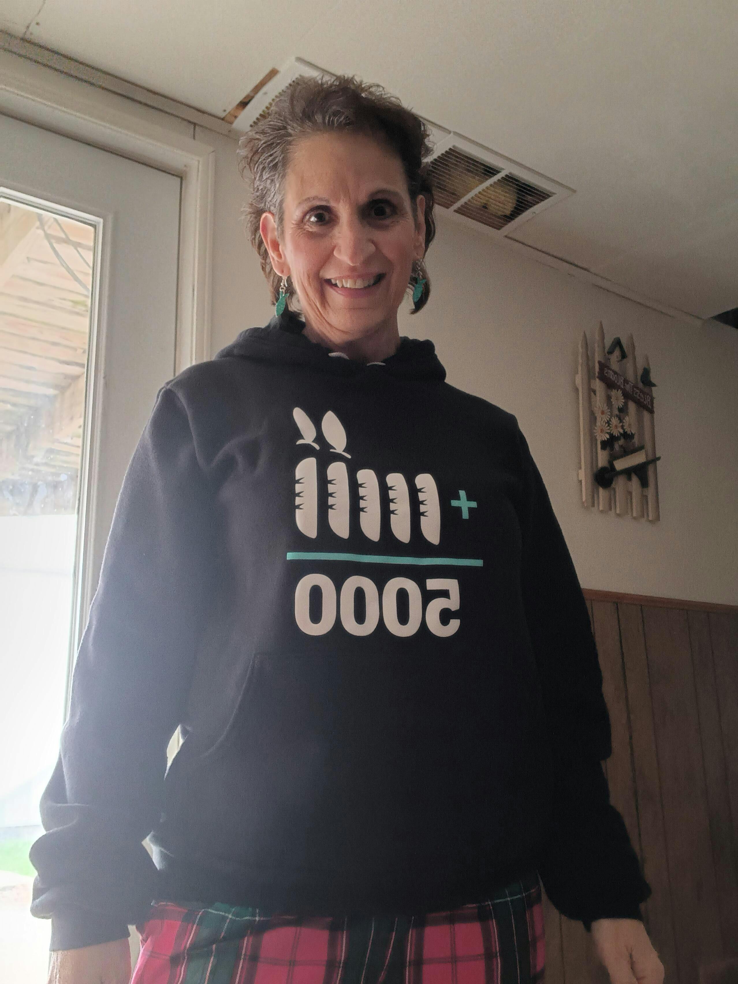 Your math teacher would count it wrong, but you know sometimes it’s right: 2 + 5 = 5000. This design’s impossible math begs conversation, so you’ll get the opportunity to tell the story of the feeding of the 5,000. And conversations like that add up, don’t they?